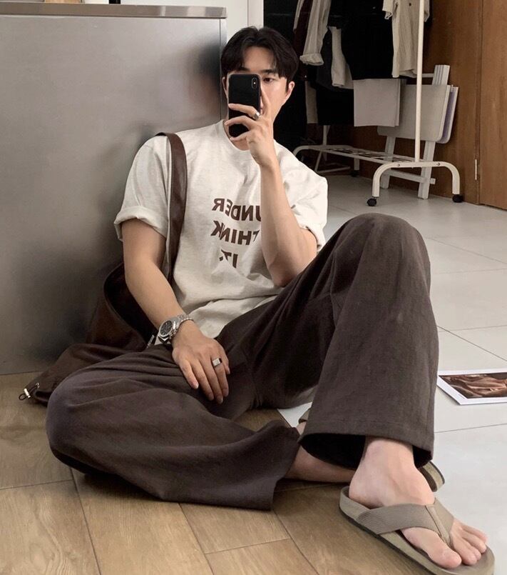 洗練された印象のメンズ リラックス ストレート ワイド リネン パンツ Ry011