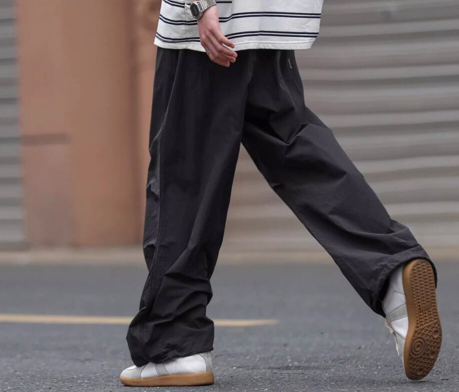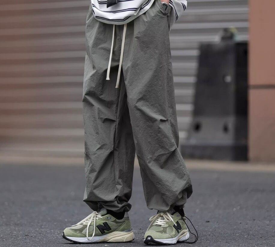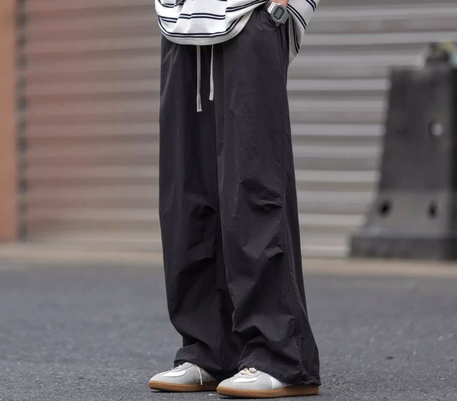 洗練された印象のメンズ ワイド テック パラシュートパンツ Ry018