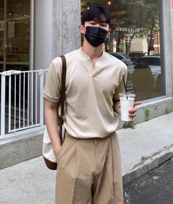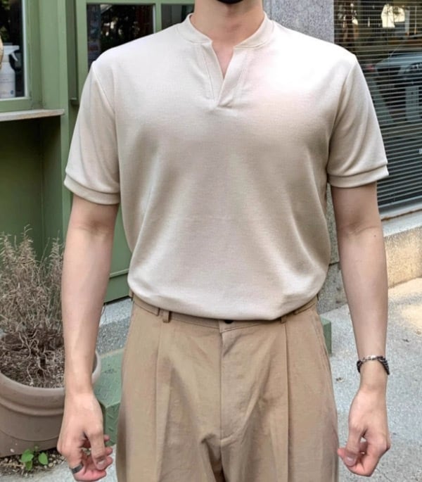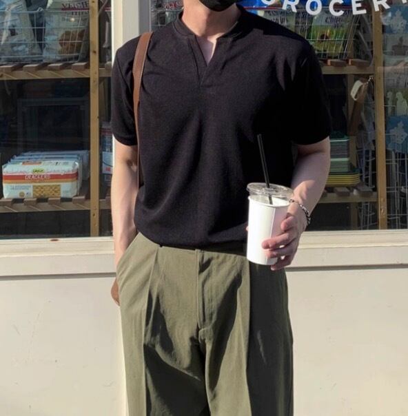 洗練された印象のメンズ Vネック ヘンリーシャツ Ry036