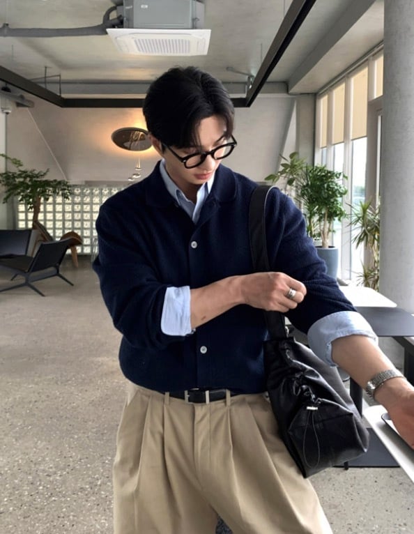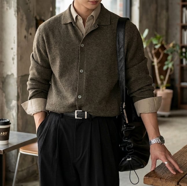 洗練された印象のメンズ 長袖 ニット ポロ カーディガン Ry039