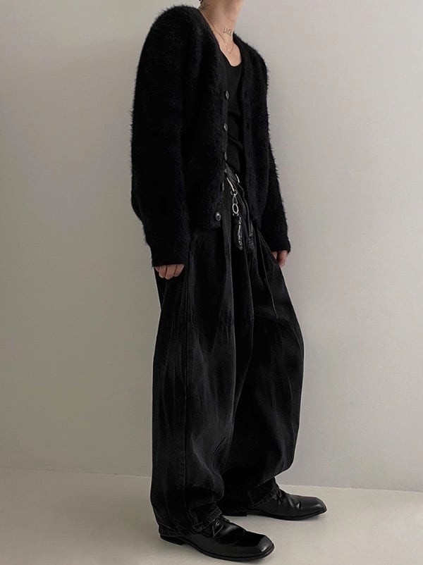 洗練された印象のメンズ モヘア風 カーディガン Ry041