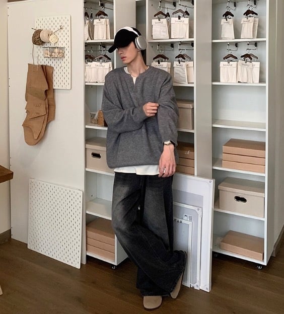 洗練された印象のメンズ 韓国 Vネック セーター プルオーバー