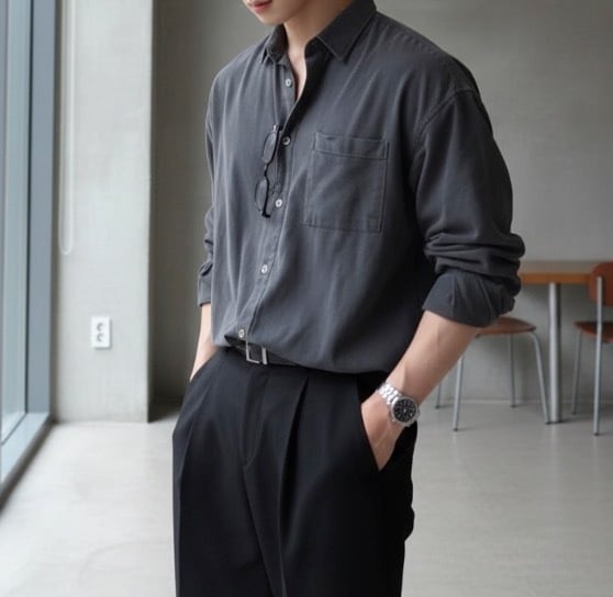 洗練された印象のメンズ カジュアル 長袖 シャツ Ry062