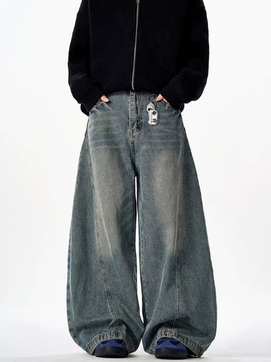 洗練された印象のユニセックス レトロウォッシュ バギー デニム Ry070