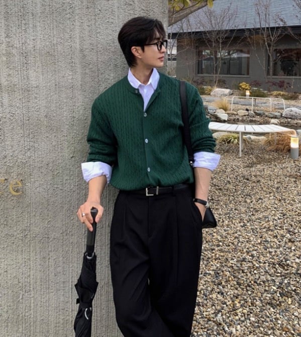 洗練された印象のメンズ ケーブルニット カーディガン Ry075