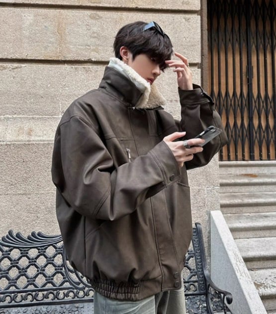 洗練された印象のメンズ ボア ジャケット Ry077
