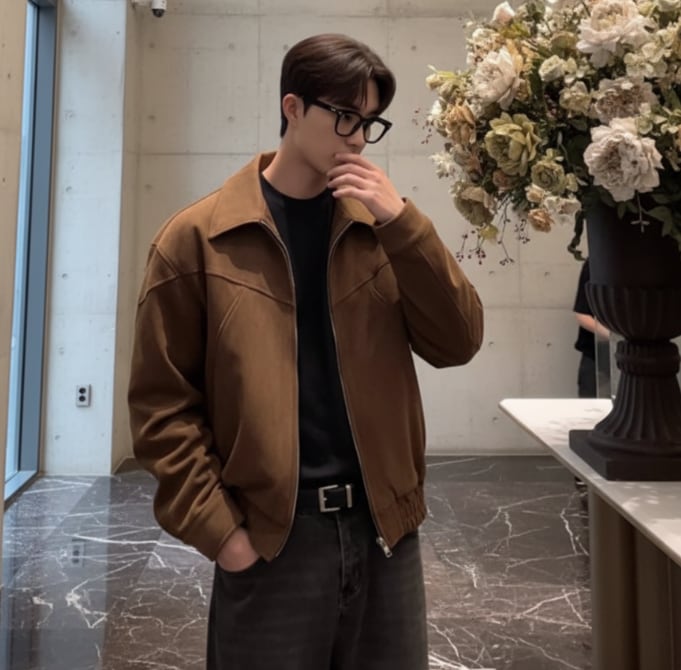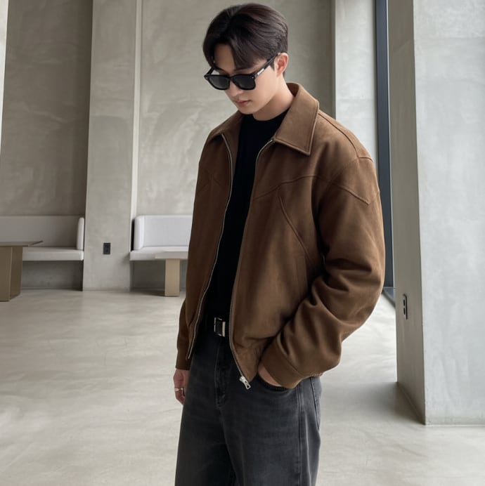 洗練された印象のメンズ スエード ジップ ジャケット Ry098