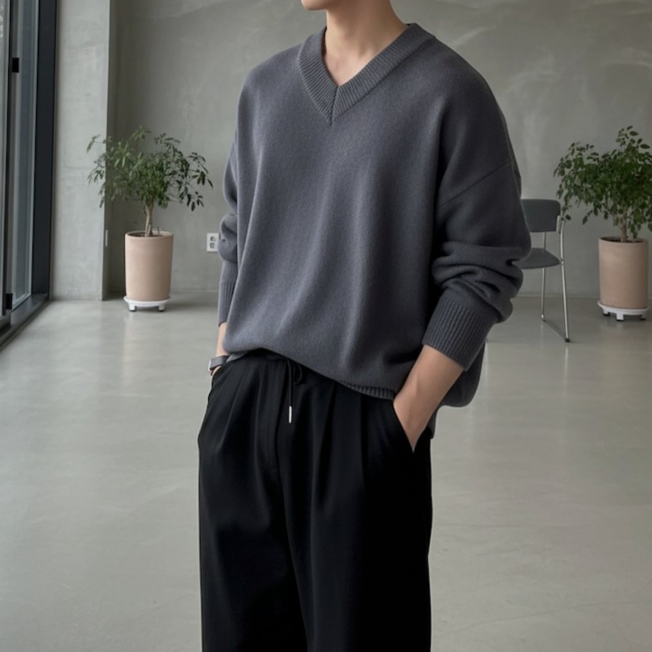 洗練された印象のメンズ 韓国 Vネック セーター ニット Ry110