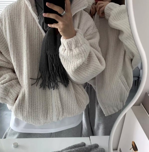 洗練された印象のフリース ショート丈 ジップ ジャケット Ry113