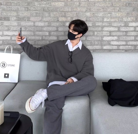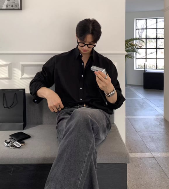 洗練された印象のメンズ 韓国風 カジュアル 長袖シャツ