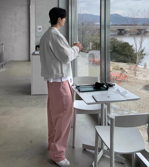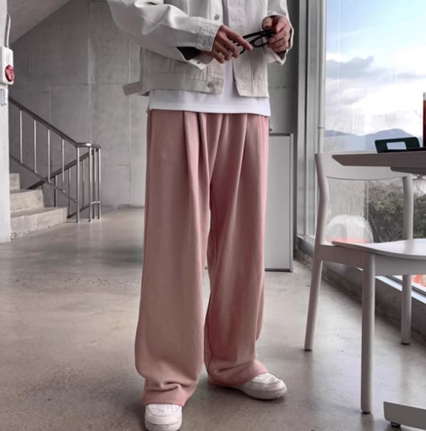洗練された印象のメンズ ワイド パンツ ルーズフィット ピンク