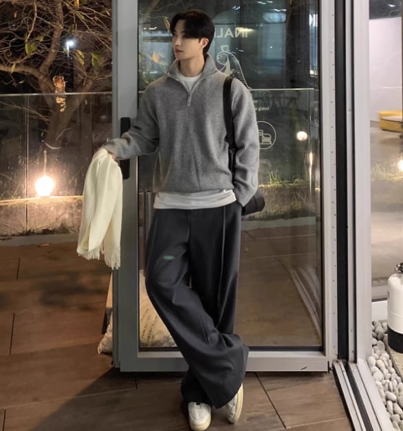 洗練された印象のメンズ ワイド スラックス ドレープ Ry139