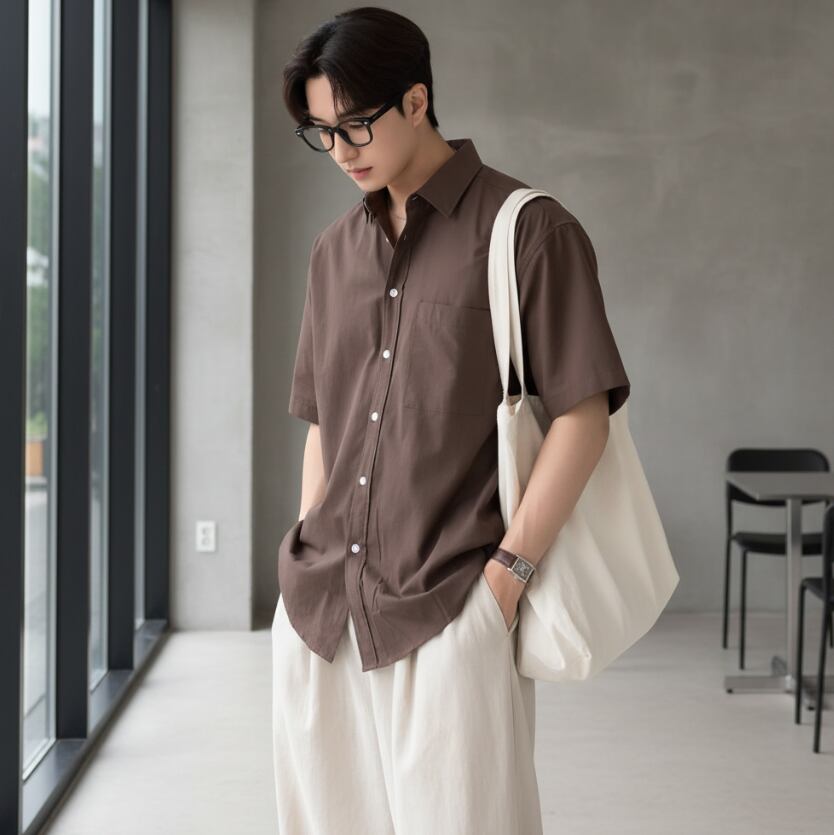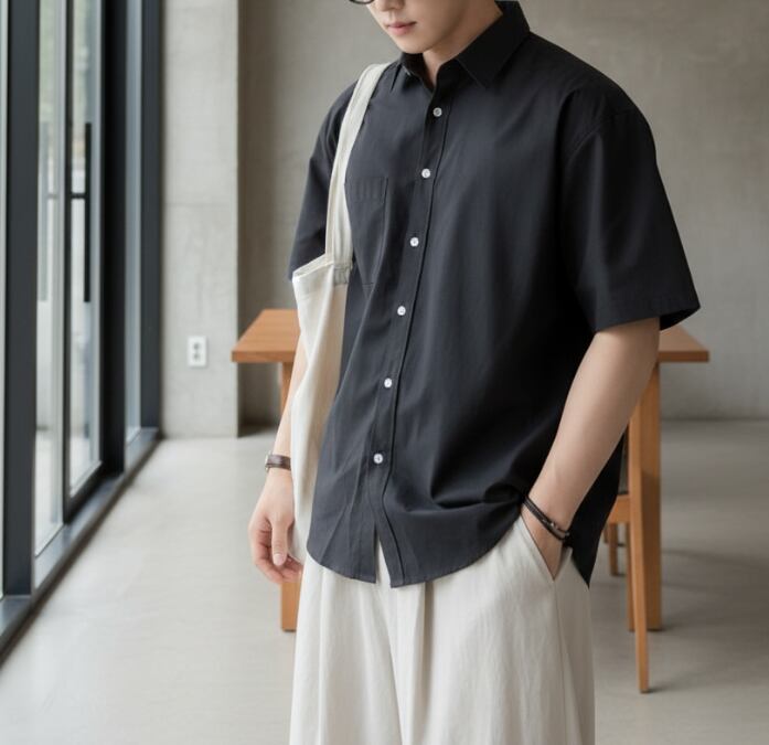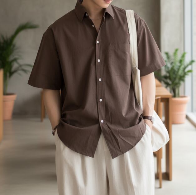 メンズ 薄手 半袖シャツ コットン リネンシャツ Ry144は、リラックス感溢れるデザインと心地よい着心地が特徴のアイテムです!軽やかな素材感が夏の暑さを和らげ、カジュアルシーンからお出かけスタイルまで幅広く活躍します。自然な風合いが高級感を演出し、どんなコーディネートにもマッチします。