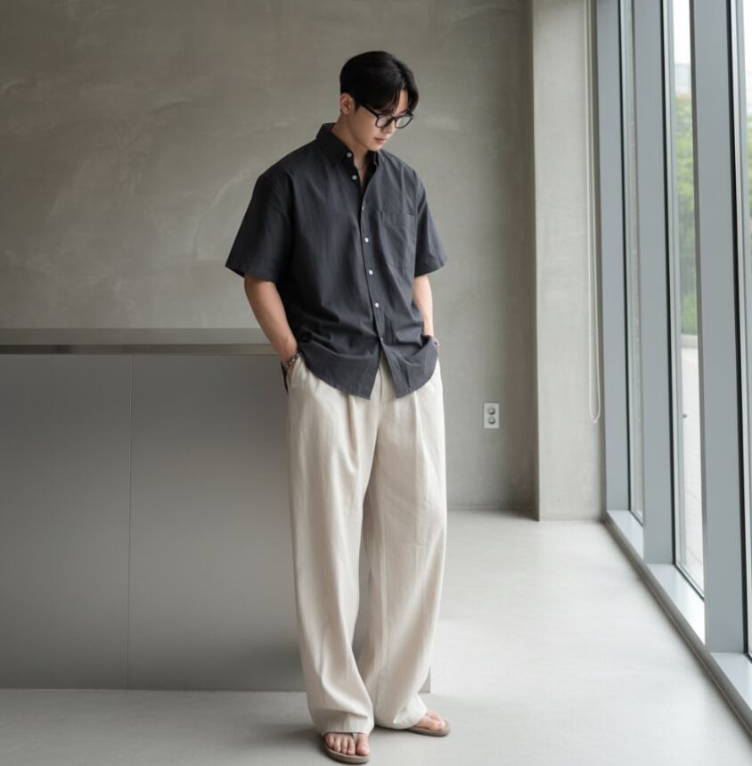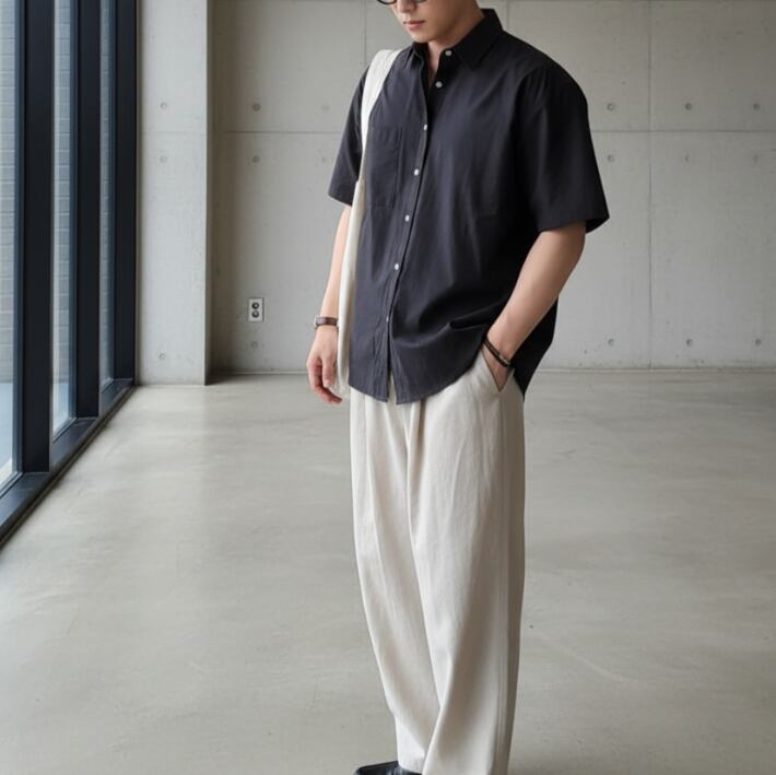 洗練された印象のメンズ 薄手 半袖シャツ コットン リネンシャツ Ry144